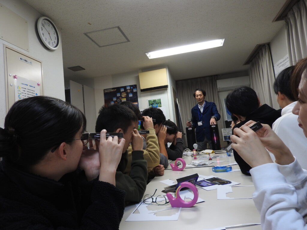 10月25日、フィールドスタジオ演習2で、履修した2回生8名、大学院人間環境学研究科博士後期課程1年2名と、兵庫県立大学西はりま天文台の国内最大2mなゆた望遠鏡を用いた夜間観測及び、兵庫県立大学の高橋隼氏による天文工作「分光器にじみえ~る」、「地球外生命探査」天文講義を受けました。
